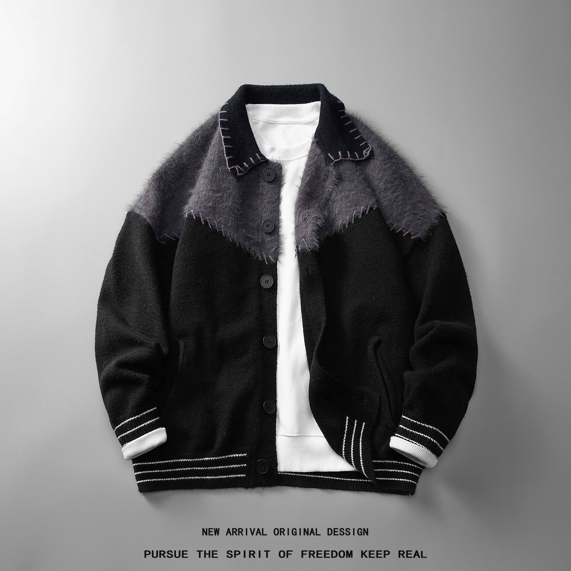 Color Contrast Patchwork Cardigan Knitted Coat Men’s Loose Casual Sweater