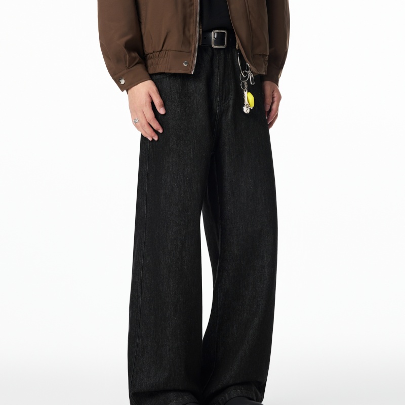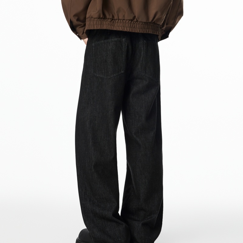 American Retro Black Raw Denim Jeans Autumn Loose A-line Wide Leg