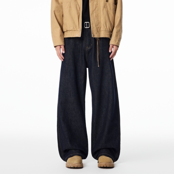 American Retro Black Raw Denim Jeans Autumn Loose A-line Wide Leg