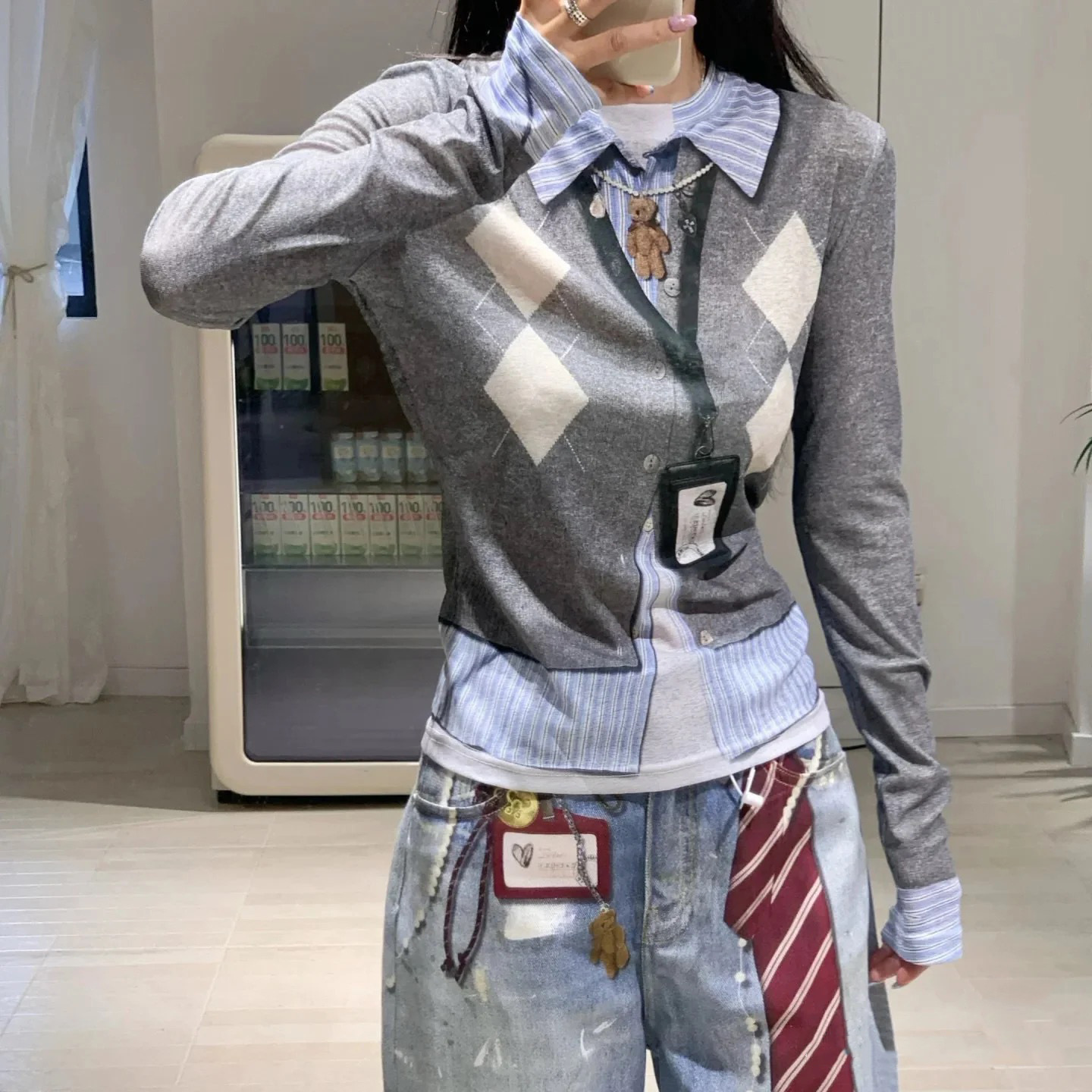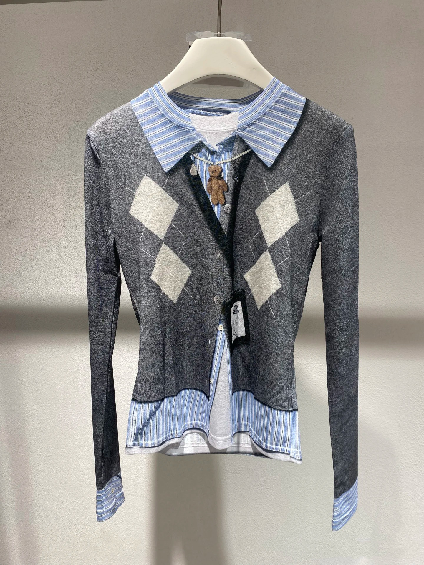 Diamond Patterned Long Sleeve Blouse For Women